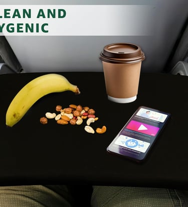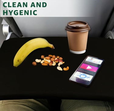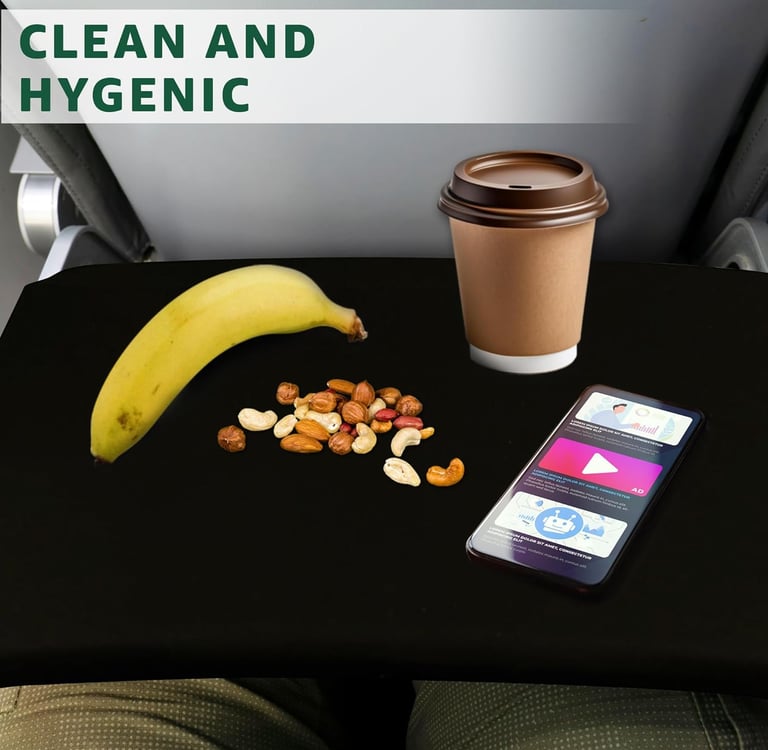 Covers tray table with washable pocketed fabric.