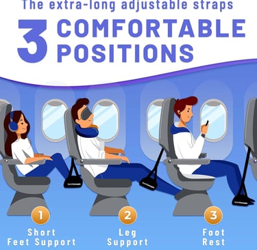 Hangs from the tray table to lift feet and ease circulation.